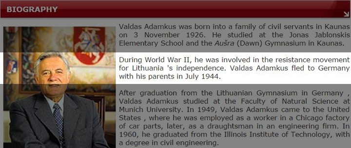 Бывший президент Литвы Валдас Адамкус может быть замешан в проведении Холокоста на территории Литвы. Из официальных биографий подобные «неудобные» эпизоды вымараны, как еще совсем недавно было скрыто «красное прошлое» другого литовского президента — Дали Грибаускайте.
