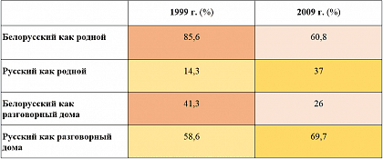Так, в 1999 году заявили, что по-белорусски разговаривают дома 41,3% белорусов (по-русски — 58,6%). К 2009 году доля разговаривающих дома по-белорусски упала до 26%; доля использующих русский язык возросла до 69,7%.