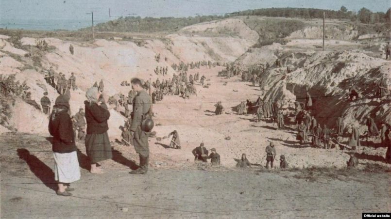 В этот момент казнь еще не началась. Теперь я увидел, что часть евреев разделась догола, в то время как другие в нижнем белье идут к месту казни. Жертвы шли друг за другом по тропе прямо мимо нас к месту казни. Детей и младенцев матери несли или вели. Вскоре после того как евреи прошли мимо нас, послышались выстрелы. Насколько я знаю, расстрел продолжался с 9.00 до 16.00.