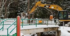 Сегодня днем был разрушен пешеходный мост через небольшую речку Синюха близ «Кургана Дружбы» у границ Латвии, России и Беларуси.