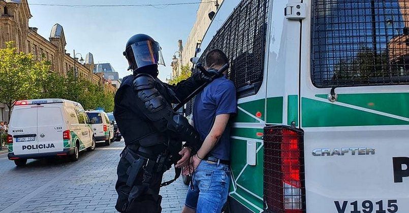 Полиция задержала 20 человек на митинге против ковидных ограничений на Кафедральной площади в центре Вильнюса. Об этом сообщает LRT со ссылкой на представителя полиции.