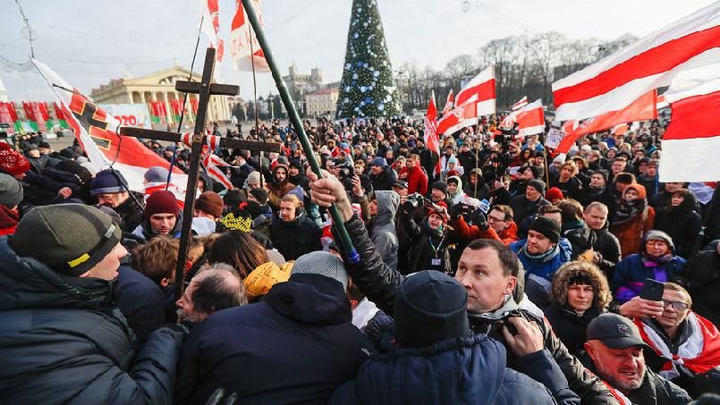 Белорусская оппозиция второй день подряд проводит несанкционированную акцию протеста в центре Минска против интеграции с Россией. Об этом сообщает ТАСС.