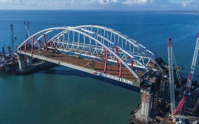 Автомобильную арку Крымского моста между Крымским полуостровом и материковой Россией установили досрочно.
