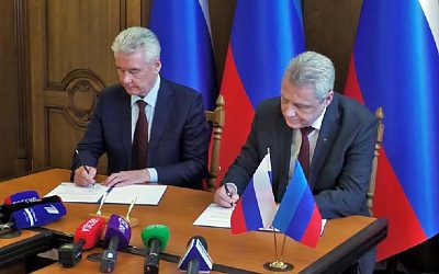 Мэр Москвы Сергей Собянин в ходе визита в Луганск подписал с главой местной администрации Манолисом Пилавовым совместную декларацию об установлении побратимских связей между столицами.