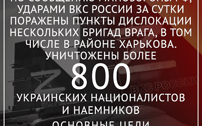 В результате ударов потери за сутки украинских военнослужащих и иностранных боевиков превысили 800 человек убитыми и ранеными.