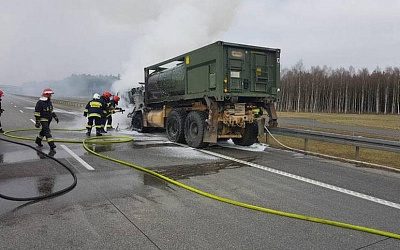 В среду 11 апреля на трассе A2 в Польше загорелся военный американский бензовоз.