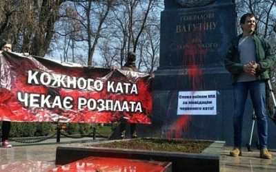 Участники украинской националистической организации «С14» облили красной краской памятник генералу Николаю Ватутину, возглавившему освобождение города в годы Великой Отечественной войны.