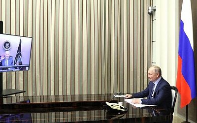 Президенты России и США Владимир Путин и Джозеф Байден ведут переговоры в режиме видеоконференции.