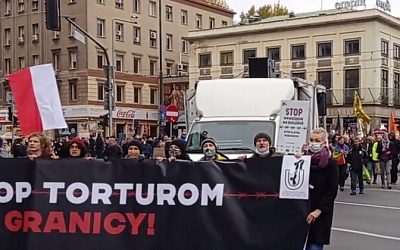В центре Варшавы проходит массовая акция «Стоп пыткам на границе» в поддержку мигрантов, которые пытаются проникнуть из Беларуси в Польшу.