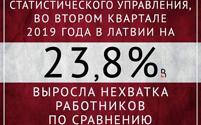 Согласно данным Центрального статистического управления, во втором квартале 2019 г. в Латвии нехватка работников выросла на 23,8% по сравнению с аналогичным периодом прошлого года.