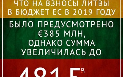 В Министерстве финансов сообщили, что на взносы Литвы в бюджет ЕC в 2019 году было предусмотрено 385 млн евро, однако сумма увеличилась до 481,5 млн евро