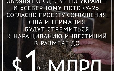 Вашингтон и Берлин в ближайшие дни объявят о сделке по Украине и «Северному потоку-2». Согласно проекту соглашения, США и Германия будут стремиться к наращиванию инвестиций в размере до $1 млрд в «зеленый фонд» Украины