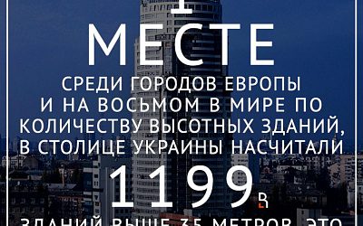 Киев оказался на первом месте среди городов Европы и на восьмом в мире по количеству высотных зданий. В столице Украины насчитали 1199 зданий выше 35 метров. Это больше, чем в Лондоне (1109) и Москве (550)