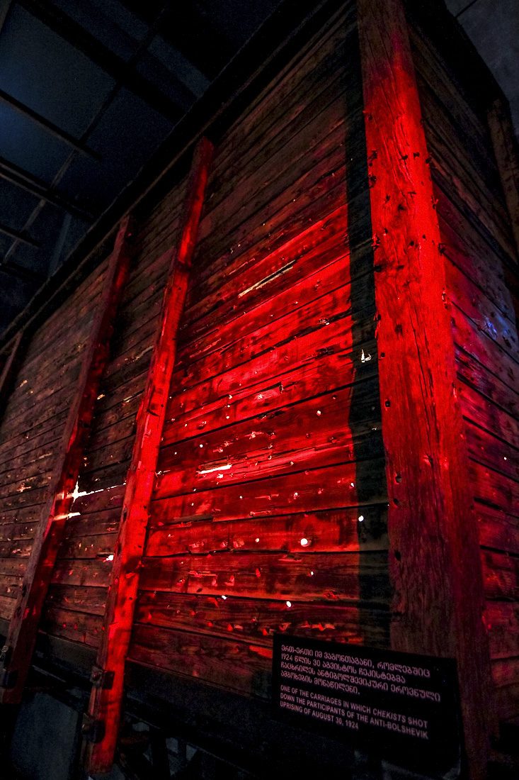 Видимо, каждому такому музею жизненно необходимо обзавестись каким-нибудь монументальным экспонатом, выглядящим солидно и пугающе, да чтобы еще правильные ассоциации создавались. У одних это паровозы (смотри Таллин), у других танк (привет из Будапешта), а в Тбилиси вот вагон.