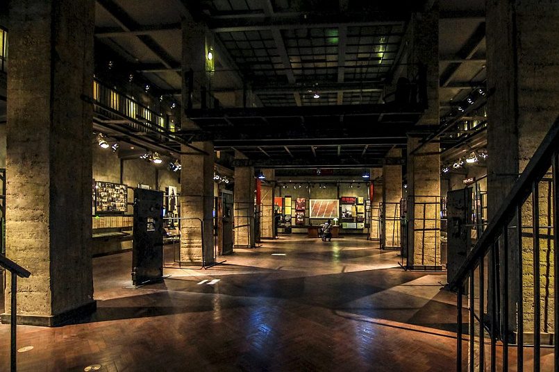 Имеются также предметы, показывающие обратную сторону медали, например аппаратура для прослушивания, использовавшаяся спецслужбами, наганы с россыпями патронов, под которые подложены фотографии детей и мирных обывателей, а блестящие денежки соседствуют с потемневшими тяжелыми связками ключей, которые наверняка подходят к тем дверям, что высятся по всему залу.