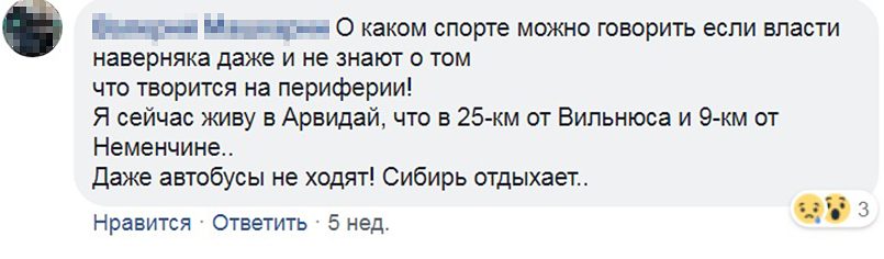 Проблемы есть не только с доступностью школ, но и с прочей инфраструктурой, направленной на развитие ребенка. В Литве других видов спорта, кроме баскетбола, как будто и нет. Благодаря Руте Мейлутите, тренировавшейся в Великобритании, вспомнили о плавании. Но дело в том, что пловцам негде тренироваться. Оставшийся с советских времен Лаздинайский бассейн год назад снесли, утвердили план по строительству нового, начали строить, но по ходу строительства обнаружили в плане технические ошибки. Так что строительство затягивается как минимум до следующего года.