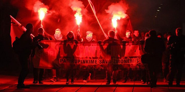 В центре Каунаса прошел националистический митинг против беженцев, в ходе которого перед собравшимися выступил лидер народников Ю.Панка, а также другие руководители Литовского союза национальной молодежи.