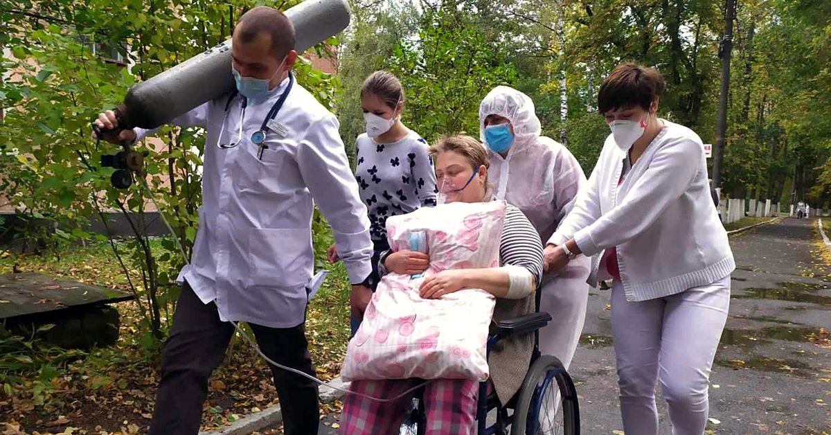 В сети появилось фото, как больных Covid-19 транспортируют между отделениями ЦРБ. Медик тянет тяжести, а пациента везут в инвалидной коляске. Отсутствие лифта усугубляет ситуацию.