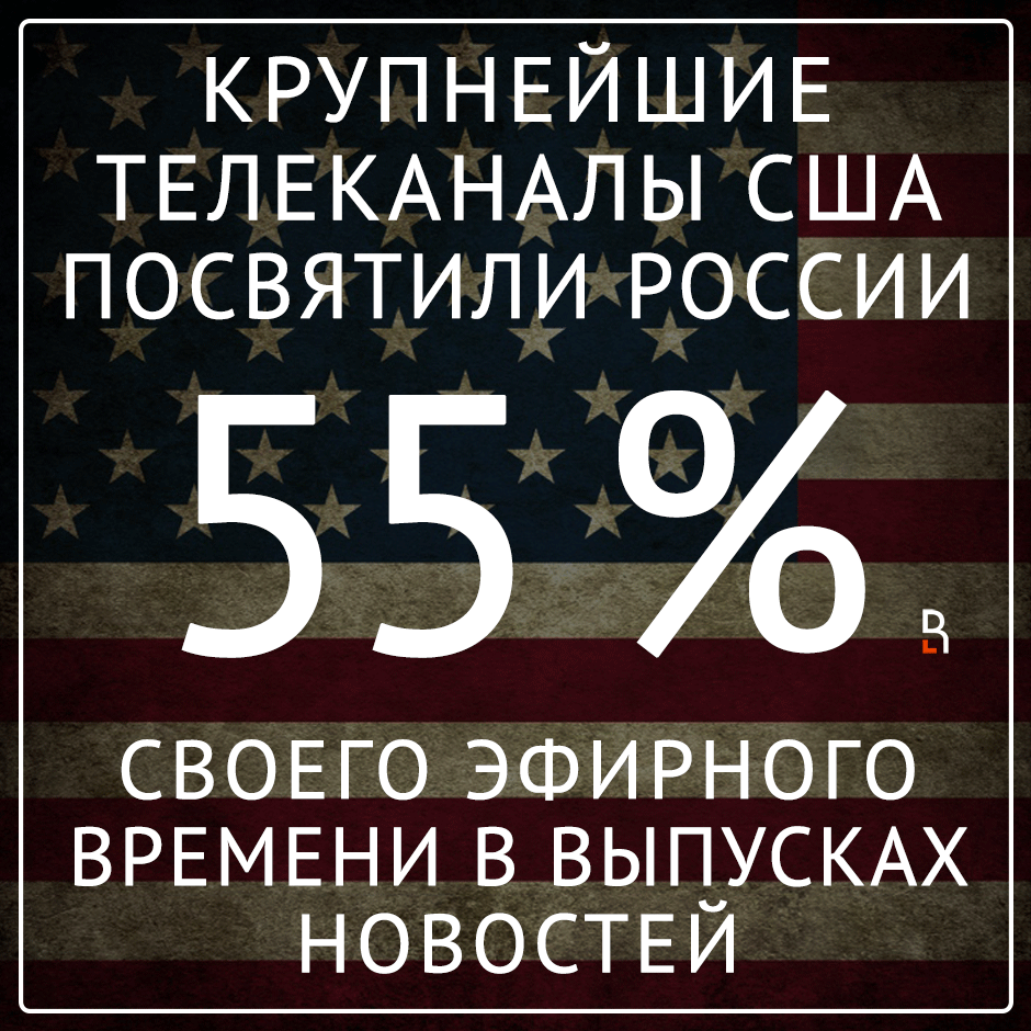 Крупнейшие телеканалы США посвятили России 55% времени в новостных выпусках. Источник: LIFE