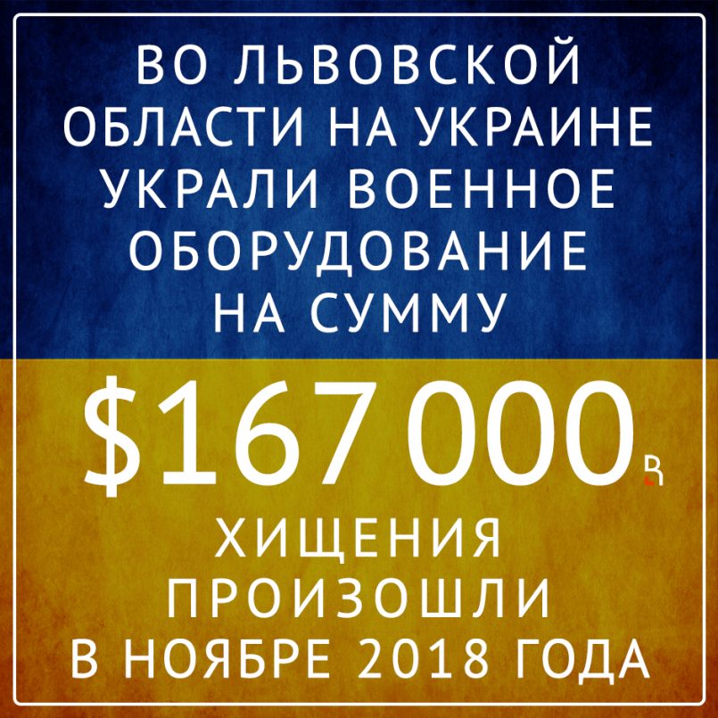 Во Львовской области Украины украли военное оборудование на сумму 167 тыс. долларов. Хищения произошли в ноябре 2018 год.