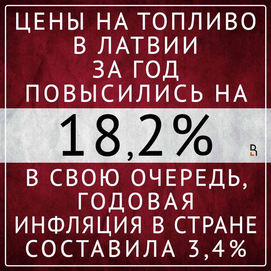 За год цены на топливо в Латвии выросли на 18,2%. В свою очередь, годовая инфляция составила 3,4%