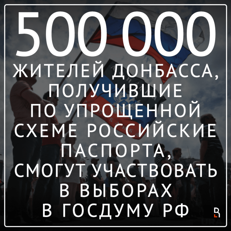 500 тыс. жителей Донбасса, получившие по упрощенной схеме российские паспорта, смогут участвовать в выборах в Госдуму