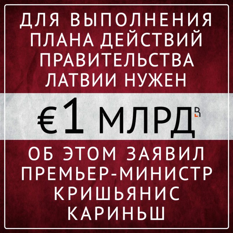 Для выполнения плана действий правительства Латвии нужен миллиард евро. Об этом заявил премьер-министр Кришьянис Кариньш.