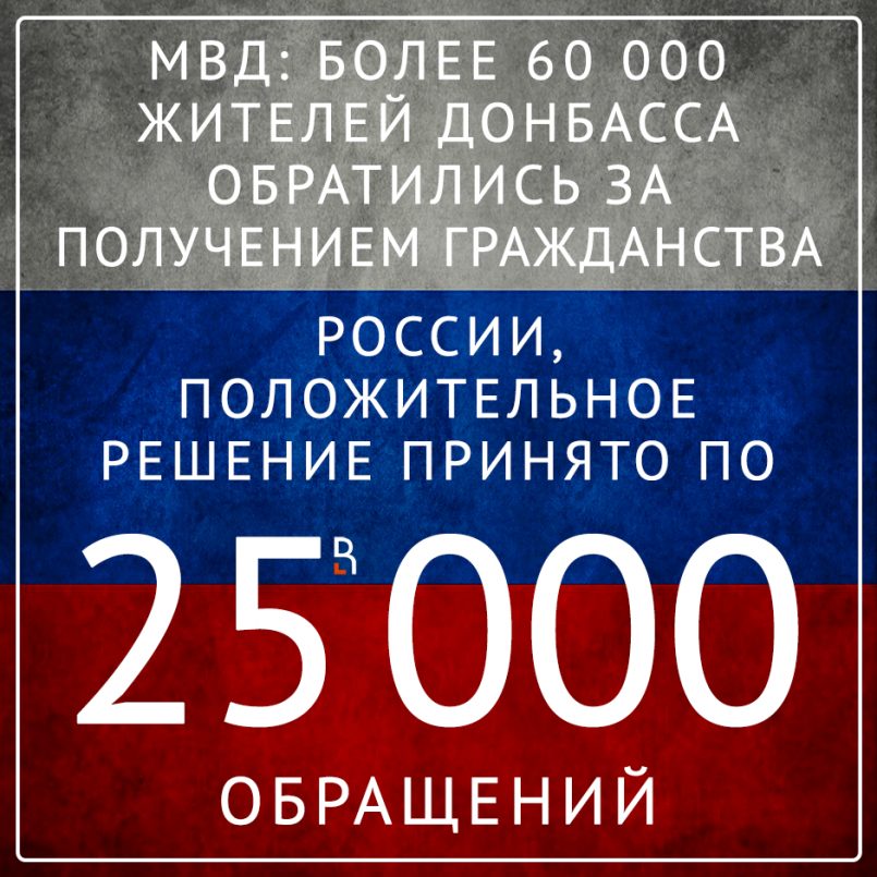 МВД: более 60 тыс. жителей Донбасса обратились за получением гражданства РФ. Положительное решение принято по 25 тыс. обращений.