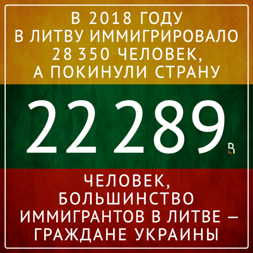 В 2018 г. в Литву иммигрировало 28 350 человек, а 22 289 человек покинули страну. Большинство иммигрантов в Литве — из Украины.