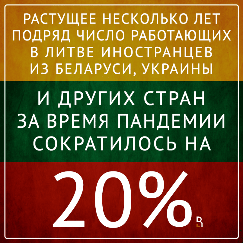 Растущее несколько лет подряд число работающих в Литве иностранцев из Беларуси, Украины и других стран за время пандемии сократилось на 20%