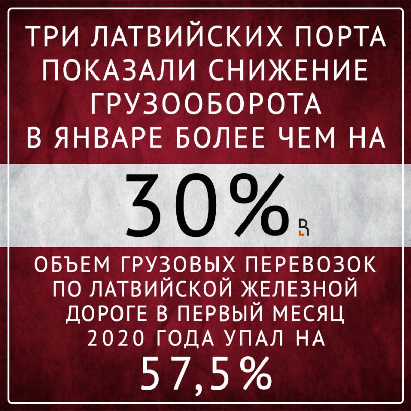 Три латвийских порта показали снижение грузооборота в январе более чем на 30%, а объем грузовых перевозок по Латвийской железной дороге в первый месяц 2020 года упал на 57,5%.