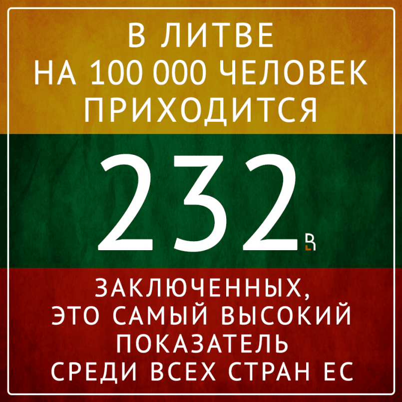 В Литве на 100 тыс. человек приходится 232 заключенных. Это самый высокий показатель среди всех стран ЕС.