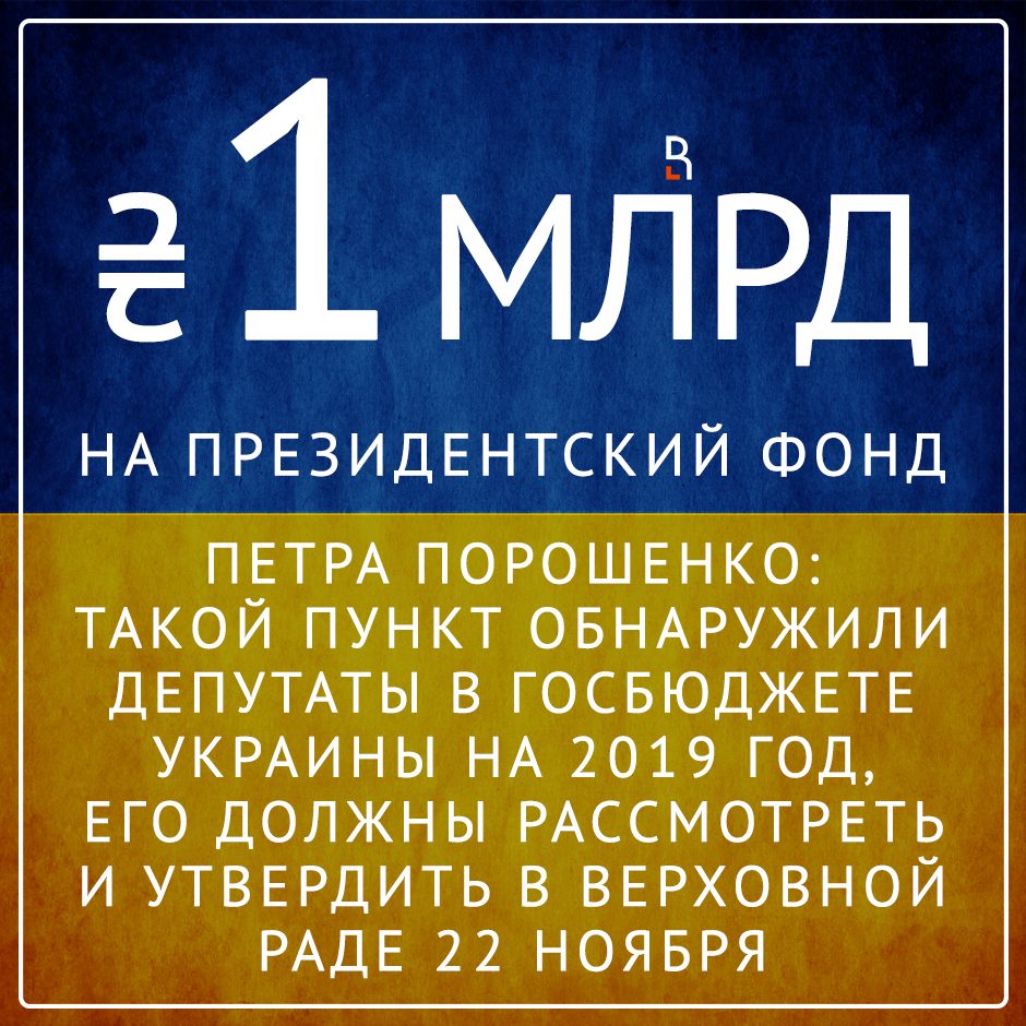 1 миллиард гривен на президентский фонд Петра Порошенко: такой пункт обнаружили депутаты в Госбюджете Украины на 2019 год, его должны рассмотреть и утвердить в Верховной Раде 22 ноября.