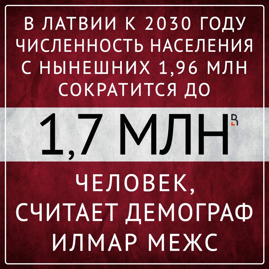 Численность населения Латвии к 2030 году сократится с нынешних 1,96 млн человек до 1,7 млн, считает демограф Илмар Межс.
