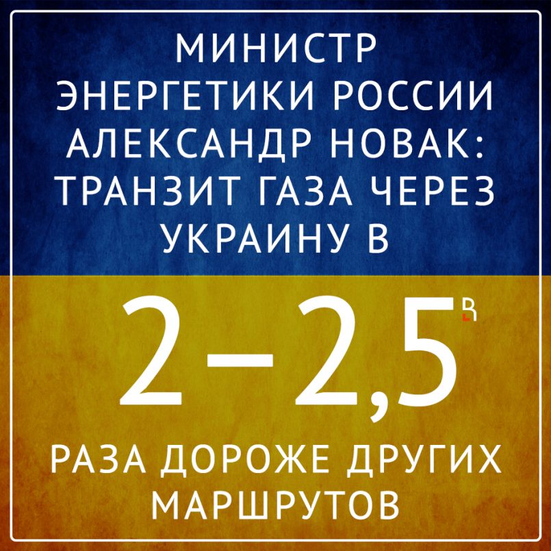 Министр энергетики России А. Новак: транзит газа через Украину в 2–2,5 раза дороже других маршрутов.