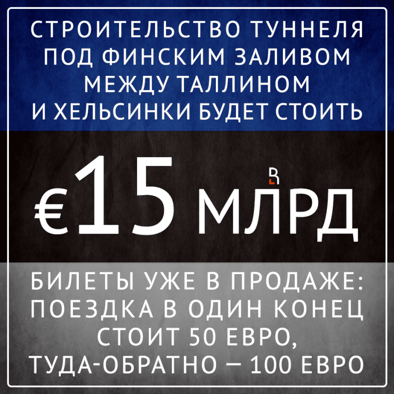Строительство туннеля под Финским заливом между Таллином и Хельсинки обойдется в 15 млрд евро. Билеты для поездок уже в продаже: поездка в один конец стоит 50 евро, туда-обратно — 100 евро.