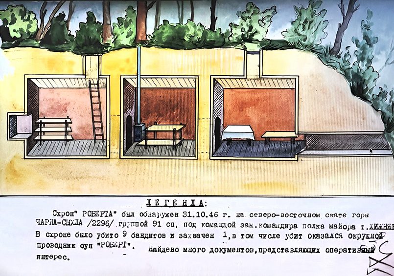 Одна из инструкций бандеровцев гласила: «…Каждый подпольщик должен знать правила конспирации, как солдат — устав полевой службы. Подпольщик должен жить под землей». Систему тайных убежищ начали создавать еще в 1944 году в ожидании прихода советских войск, а к 1950-м годам она «опутала» всю Западную Украину. Схроны бывали разных видов: склады, пункты радиосвязи, типографии и казармы. Строились они по принципу землянок с той разницей, что вход был замаскирован.