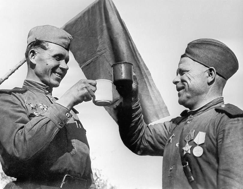 Стал я смотреть в бинокль. Пристально смотрю в сторону противоположной деревни, где засели немцы. У нас-то, думаю, победа, а у них — что? Вижу: мостик штормовой между нашей и их деревней, и там, за мостиком, виднеется белое полотнище. Сдаются! Твою мать! — сдаются! Тишина. Ни голоса, ни выстрела. И верится уже, что все, конец войне, и не верится. До слез!!..»