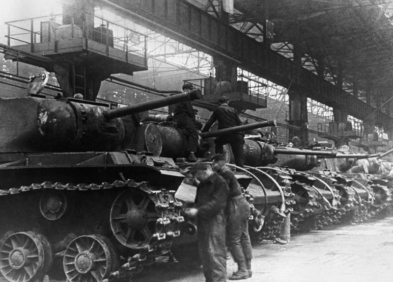 В то время как советская промышленность уже во многом зависела от женского труда, Гитлер еще не пришел к мысли использовать на заводах труд жен и матерей своих солдат. В Советском Союзе десятки тысяч женщин — «тружениц тыла» — работали на линиях по сборке танков, у токарных станков. Они понимали, как важна их работа для фронта, для победы. Многочисленные плакаты повторяли один и тот же вопрос: «А что ты сделал для фронта?» Челябинск, крупный центр военной промышленности на Урале, получил даже второе имя — Танкоград.