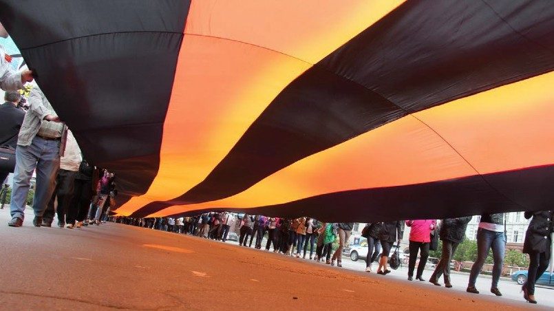 Огромную Георгиевскую ленточку развернули в центре Кишинёва.