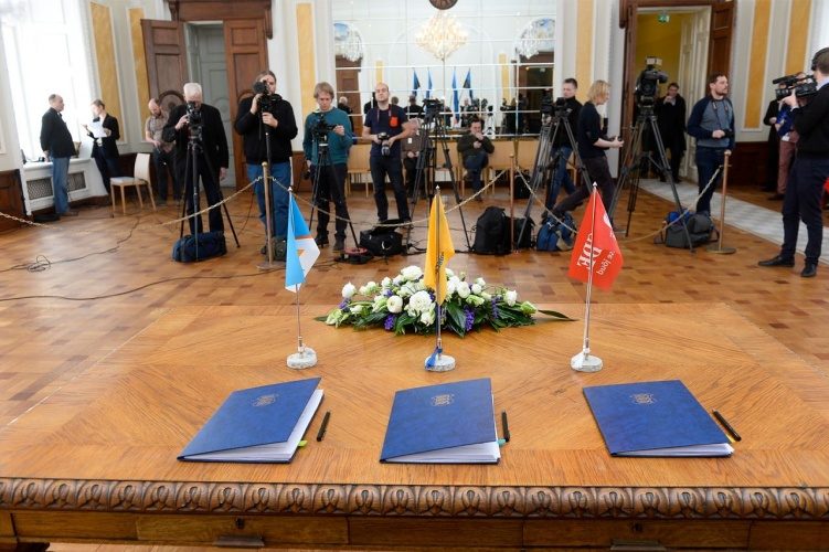 Сегодня ровно в полдень в Белом зале Рийгикогу было подписано коалиционный договор между Партией реформ, Социал-демократической партией и IRL.
