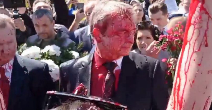 Посла России в Польше Сергея Андреева облили красной краской при попытке возложить венок на кладбище советских воинов в Варшаве. Об этом сообщает РИА Новости.