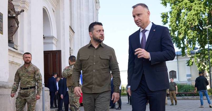 Президент Украины Владимир Зеленский и польский лидер Анджей Дуда прибыли в кафедральный собор святых апостолов Петра и Павла в Луцке Волынской области. Об этом сообщил глава Украины в своем телеграм-канале.