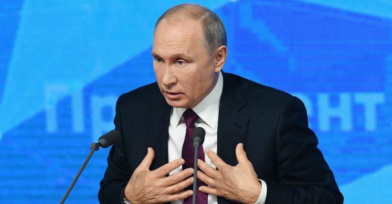 «А тех, кто пытается поспорить с такой, ни на чем реально не основанной беспардонной ложью, заранее обвиняют в информационной войне против демократической Европы. Это цитата», — сказал Путин.