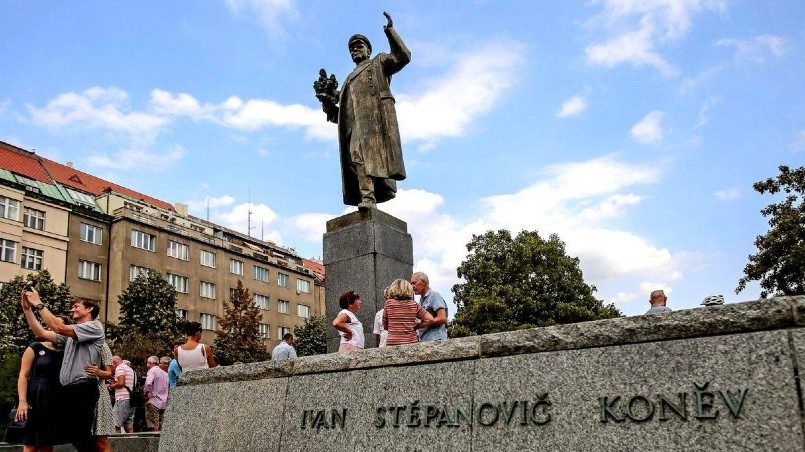 Памятник маршалу Советского Союза Ивану Коневу был демонтирован 3 апреля в Праге. В российском посольстве в Чехии действия властей назвали циничной расправой. Дочь военачальника Наталья Конева заявила, что намерена вернуть снесенный монумент полководца в Москву. Позже с просьбой вернуть памятник в Россию обратился глава Минобороны РФ Сергей Шойгу. Чешские Министерства обороны и иностранных дел ответили отказом. Однако потом МИД Чехии заявил о готовности вести переговоры с Россией. Несколько дней назад на месте демонтированного памятника неизвестные установили унитаз.