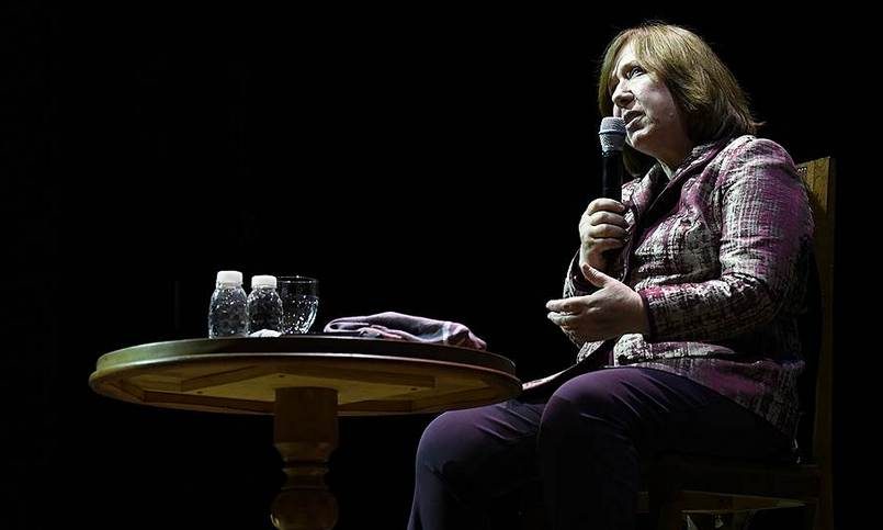 В свою очередь Алексиевич констатировала, что «коммунизм еще не мертв и готов дать последний бой», судя по последним событиям в Беларуси, России и на Украине. Нынешнюю эпоху писательница назвала «безвременьем» и заявила о необходимости работать с теми белорусами, кто все еще поддерживает власть.
