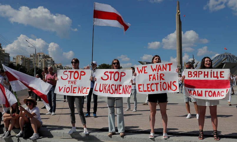 Массовые протесты в Беларуси, нередко переходящие в столкновения демонстрантов с сотрудниками правоохранительных органов, проходят после выборов президента 9 августа. Победу на выборах одержал Лукашенко с результатом 80,1%, а его основной оппонент Светлана Тихановская, набравшая 10,12%, была вынуждена уехать в Литву.