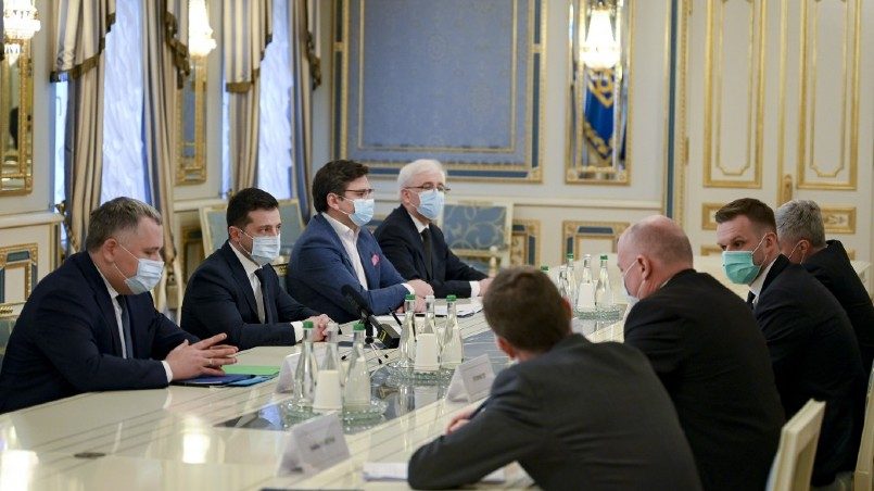«Хочу поблагодарить за санкционного политику по временной оккупации Крыма, из-за войны в Донбассе и ради энергетической безопасности Европы», — сказал Зеленский.