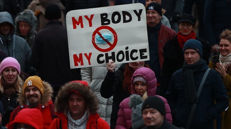 По данным СМИ, на площади собралось около 300 человек. В руках демонстранты держали плакаты с надписями «#Дышисвободно», «Мое тело — мой выбор», «Страх — не иммунная система», «Больше свободы» и так далее. По словам активистов, люди сами должны принимать решения, хотят ли они носить маски или нет.