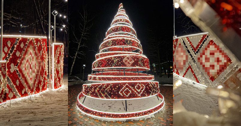 В этом году в Лиелварде установили елку, украсив этим поясом, на котором изображаются ветвистые кресты, зигзаги, ромбы и свастики.